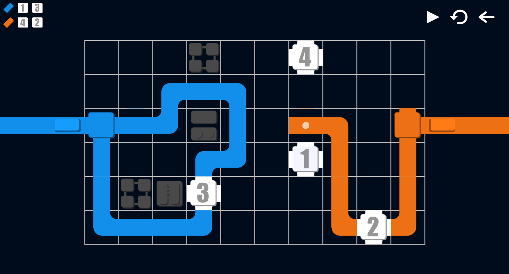 Your trams need to visit all the stations (described in the left corner) and return to the main station.